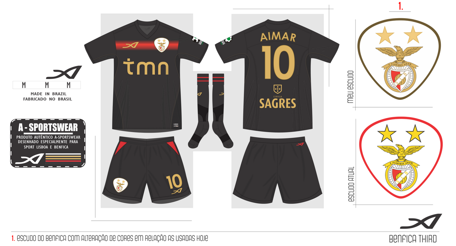 Dessa vez o Third vem trazendo sua principal característica: algo completamente diferente dos uniformes principais, mas que se possível esteja relacionado à entidade em questão. Neste caso, fazemos uma homenagem à sua história vitoriosa, sendo sobretudo utilizado da Champions League, até mesmo como Home Kit. Além do jogo de cores entre o dourado e o grafite, a camisa recebe em marca d'água a imagem da mascote do Benfica, a Águia Vitória, que antes dos jogos no Estádio da Luz, cruza o campo e aterriza no escudo da equipe, este somente com a parte inferior.