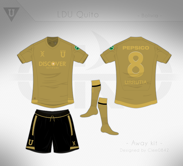 AWAY KIT: O Away Kit é contemplado por gola polo e punhos apertados. Fazendo o uso apenas do "U"como escudo, vem no marcante tom de vermelho que em muitas vezes já vestiu a equipe. Detalhes laterais revelam um corte moderno, utilizando o dourado para homenagear o mais vitorioso clube equatoriano.